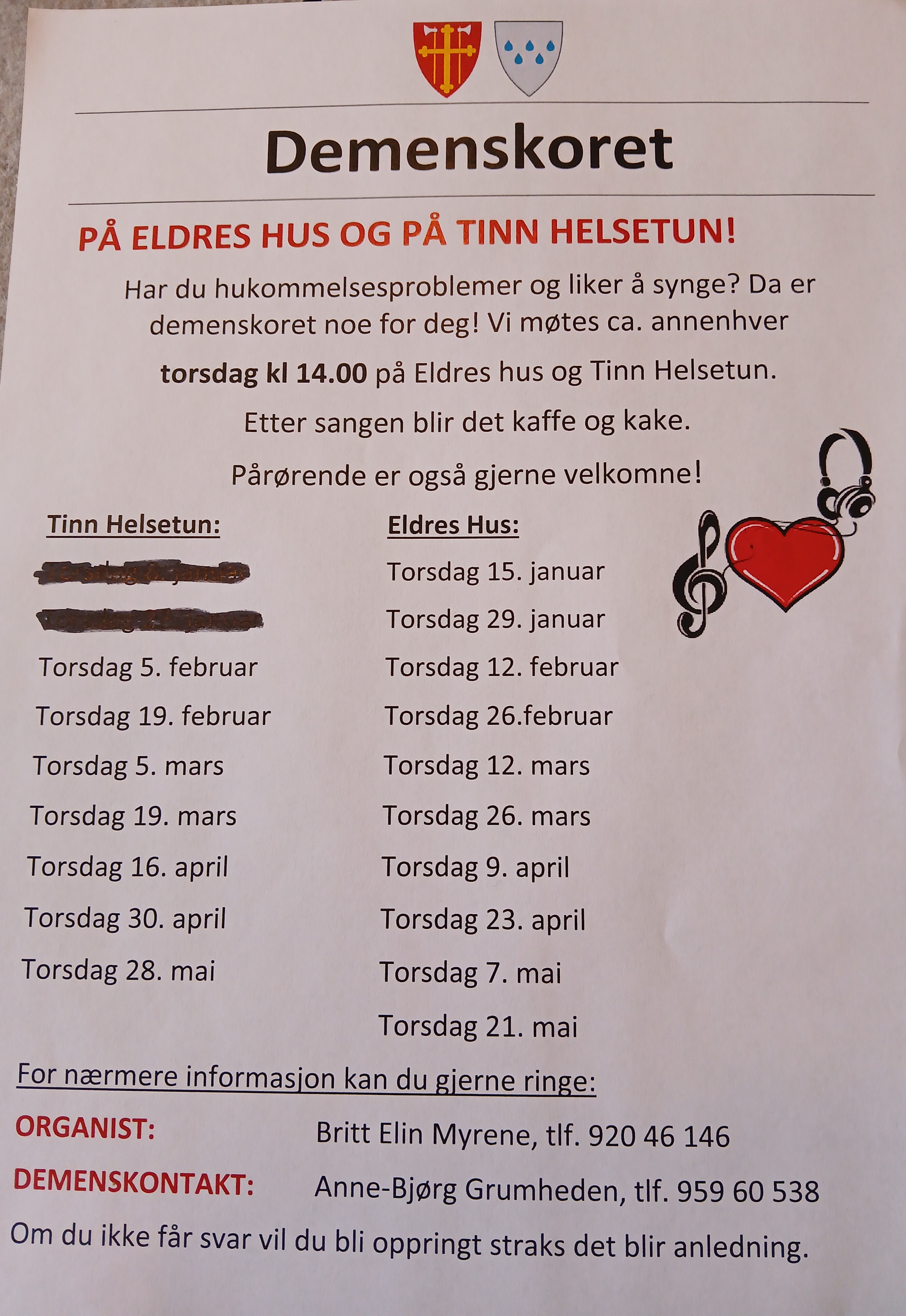 Demenskoret starter opp igjen med øvelser ca. annenhver uke på Tinn Helsetun og Eldres Hus.